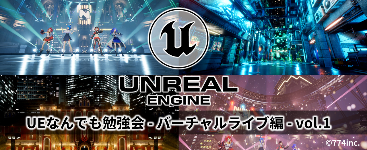 Unreal Engineは、ゲーム制作だけでなく、バーチャルライブなどの様々な分野で活用されています。この勉強会では、VTuberプロダクション「ななしいんく」が開催したバーチャルライブを題材に、ライブ制作・演出を主導したMMT・REZ&様、技術サポートを担当した株式会社Leon Gameworks様、VRM4Uプラグインの開発者である山本治由氏が登壇し、ライブで使用されたテクニックや技術について紹介します。