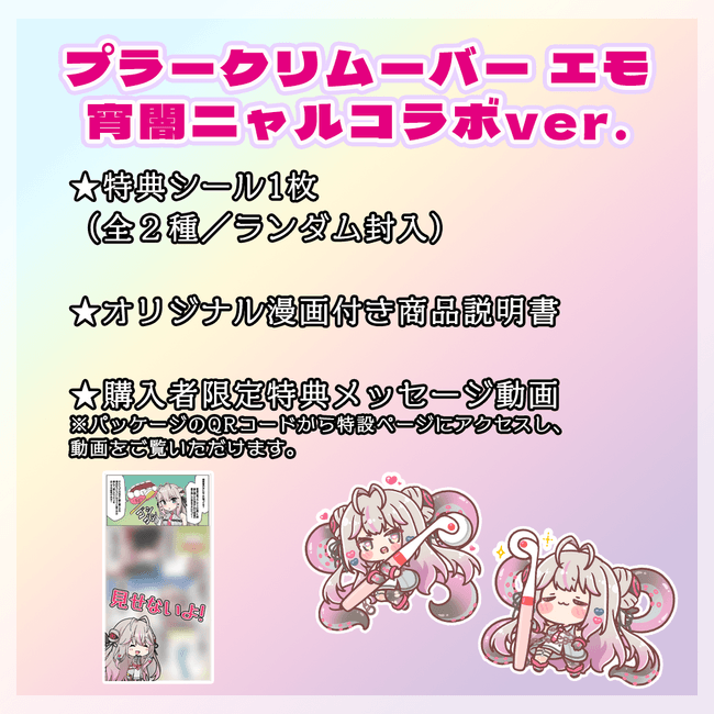 コラボ商品には、購入者限定特典があります。価格は1,880円(税込)で、内容はブラシヘッド1本とハンドル1本のセットです。特典としては、特典シール1枚(全2種、ランダム封入)、オリジナル漫画付き商品説明書、購入者限定特典メッセージ動画が付いてきます。
