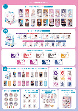 5周年記念のキービジュアルを用いたグッズや、メンバーによる自画像イラストを用いたグッズなど、多彩な商品が販売されます。