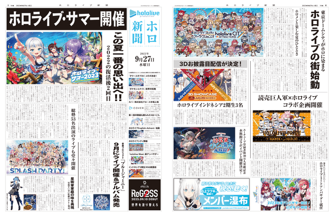 さらに、半年間の軌跡をたどる「ホロライブ新聞」をプレゼント。ペーパー版新聞とA4クリアファイルをセットで200名に抽選でプレゼントします。そのうち4名には、大神ミオさん、または博衣こよりさんのサイン入り新聞をプレゼントします。キャンペーン終了後には、データ版新聞を全員にプレゼントします。