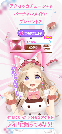 アプリ版では、メイドとの音声によるコミュニケーション、アクセサリーや小物をメイドにプレゼントする機能、メイドと一緒に写真を撮影する機能、誕生日特典サービス、季節にちなんだイベントなどが楽しめます。