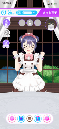 バーチャルあっとほぉーむカフェは、ユーザーがスマホからバーチャル空間にアクセスし、アバターをまとった『ご主人様・お嬢様』に変身し、メイドたちとコミュニケーションをとるサービスです。部屋には最大3名のユーザーが入室可能で、他のユーザーとも交流できます。