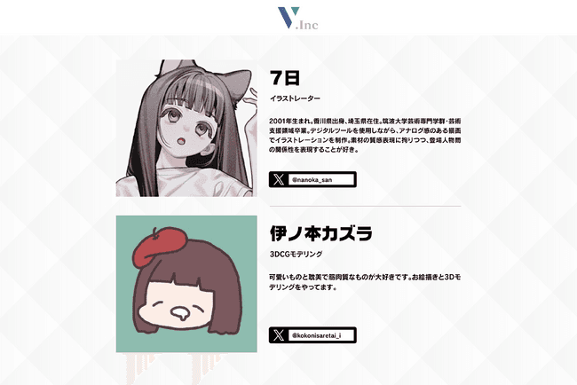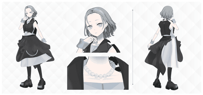 アバターファッションの知見を有する株式会社Vは、制作進行を担当。複数販売アバターの同時制作進行/チーム体制での分業体制確立など、クリエイターのクリエイティビティを最大限発揮できる仕組みづくりを進めています。