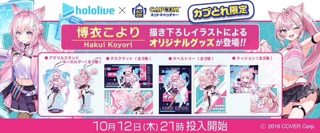 カプコンが運営するネットクレーンゲーム「カプとれ」は、カバーが運営する女性VTuberグループ「ホロライブ」の一員である「博衣こより」とのコラボレーションを2023年10月12日から25日まで開催予定です。これは、2022年夏に開催されたコラボレーションの第2弾で、イラストレーターの加川壱互さんと水瀬レイさんによる新作イラストを使用したプライズ景品が提供されます。