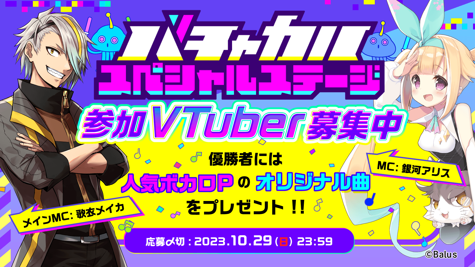参加VTuberにとっては、大型リアルイベントでファンとの交流をより深める場として、また自身の活動を宣伝することで新たなファンに出会える場として、一緒に「バチャカル」を盛り上げていきたいと考えております。