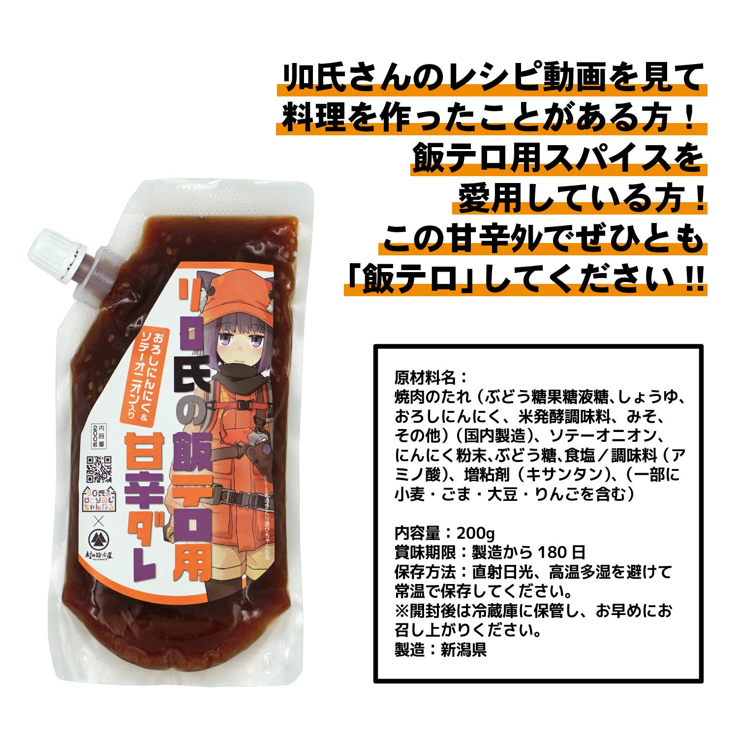 商品名:リロ氏のひとり遊びちゃんねる×村の鍛冶屋 リロ氏の飯テロ用甘辛ダレ 200g LIS-002