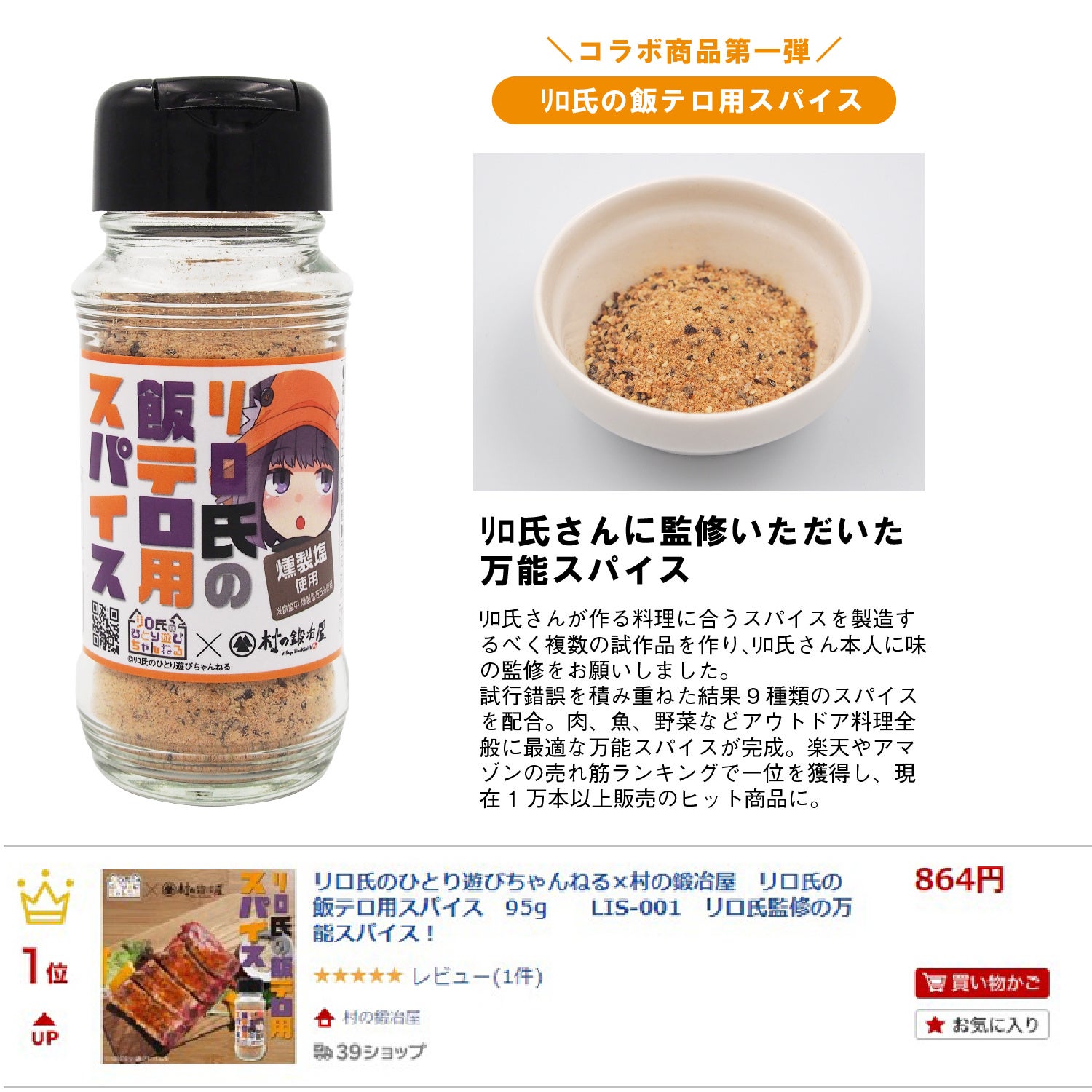 第一弾のコラボ商品「リロ氏の飯テロ用スパイス」は発売から一年で累計販売数量一万本を突破(2023年11月現在1万4000本販売)。