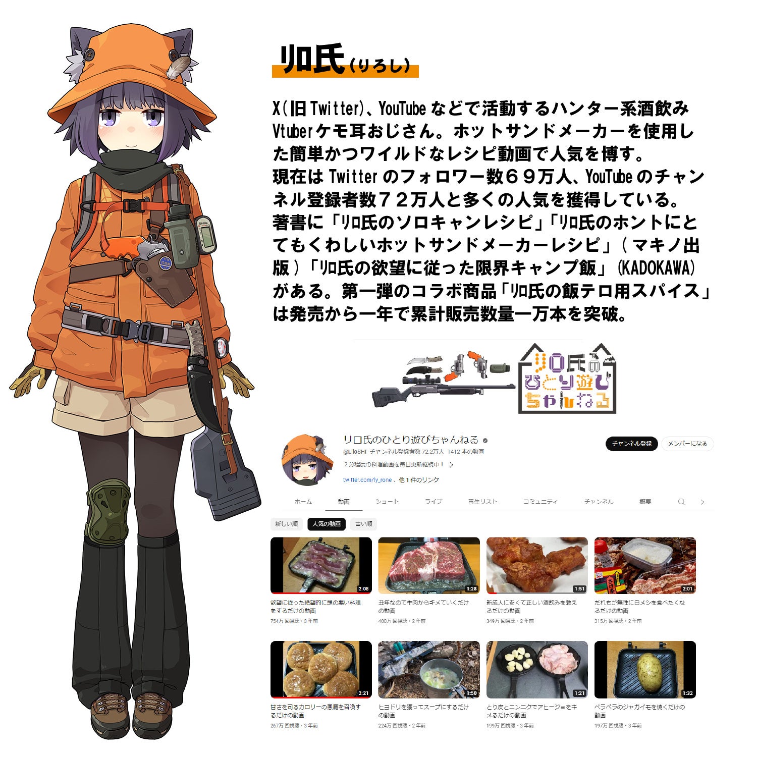 著書に「リロ氏のソロキャンレシピ」「リロ氏のホントにとてもくわしいホットサンドメーカーレシピ」(マキノ出版)「リロ氏の欲望に従った限界キャンプ飯」(KADOKAWA)がある。