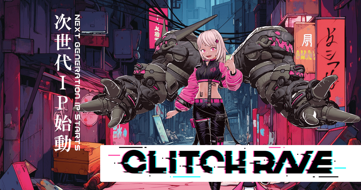 GLITCH RAVEはXR、ブロックチェーン、AIなどのテクノロジーを活用し、ゲーム、音楽、メタバースなど多岐に展開するMISOSHITAによる次世代IPプロジェクトです。