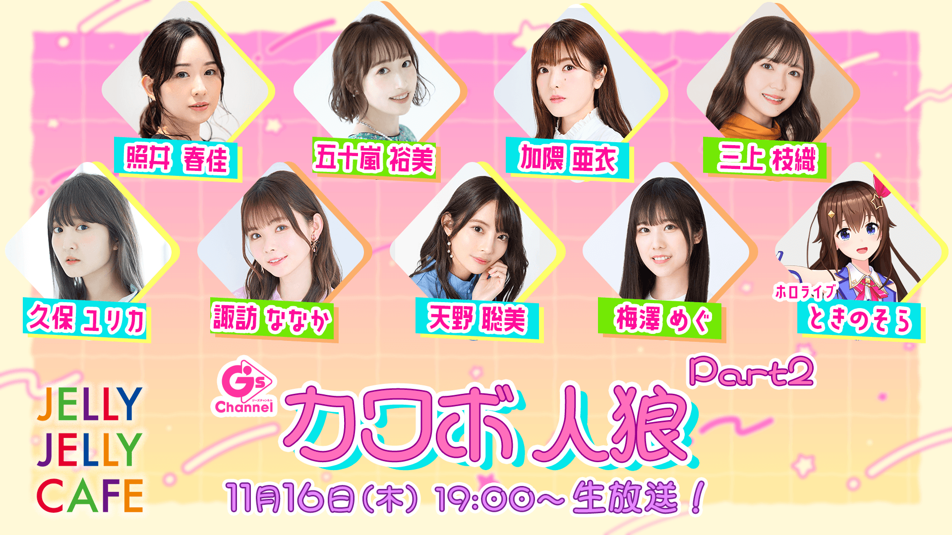 11月16日(木)19:00から、女性声優とVTube総勢9名による生放送での人狼特番「G’sカワボ人狼 Part2」を配信いたします。