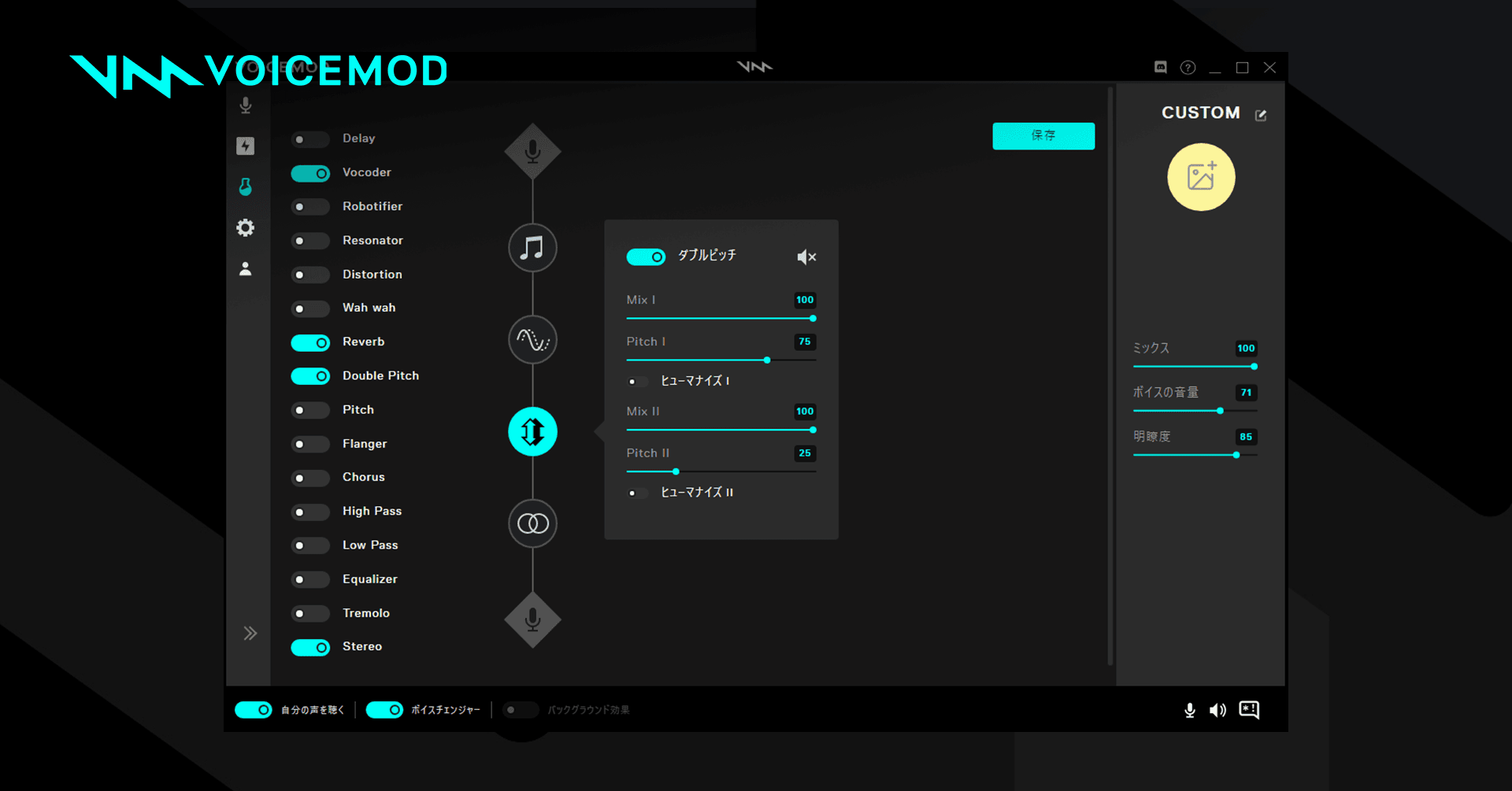 「Voicebox」 ボイスフィルター機能(有料版では100種類以上のボイスフィルターが使用可能)