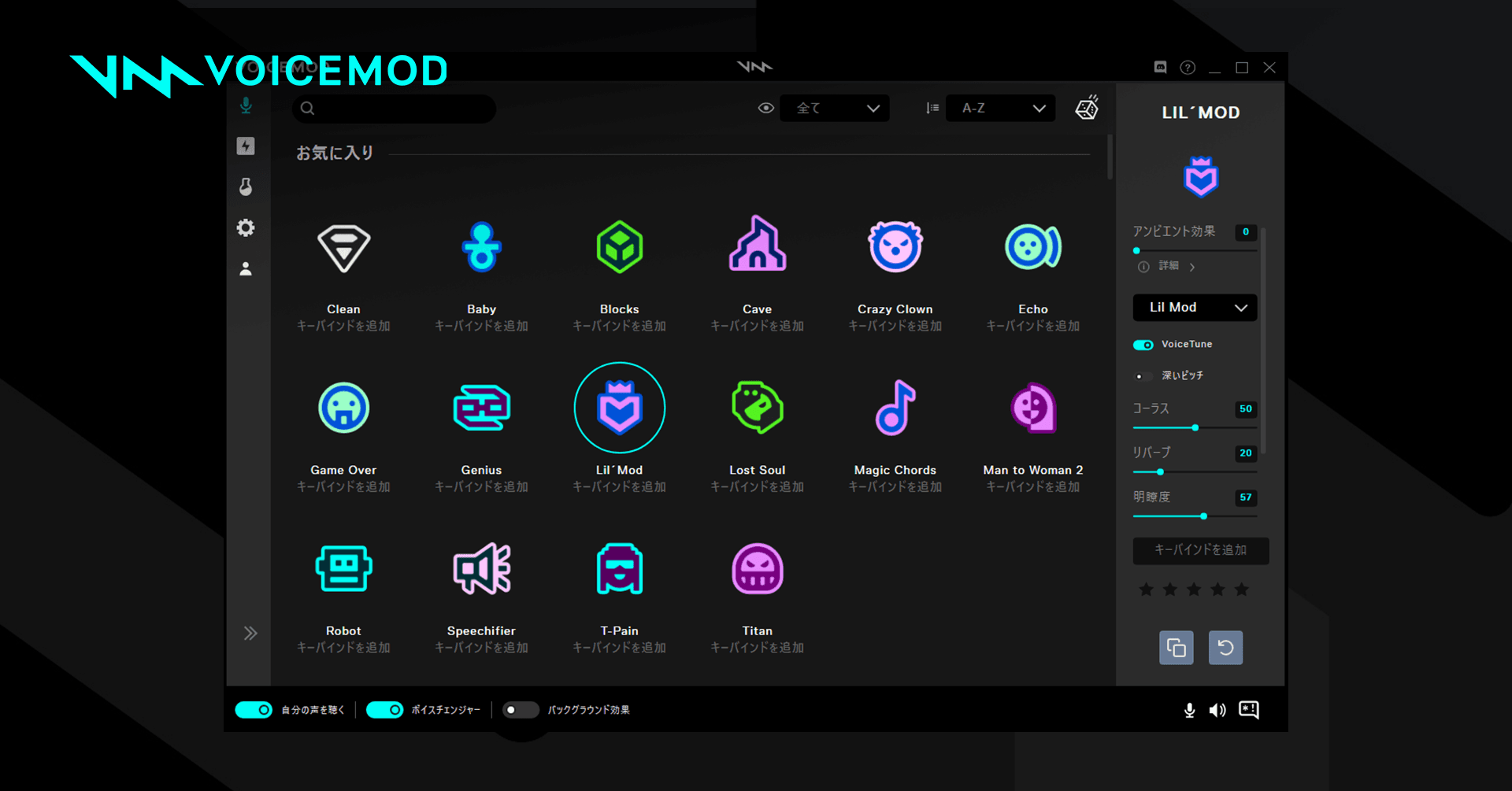 自分の声を変えたり、全く新しいキャラクターを演じたり、映画のようなエフェクトを加えるなど、Voicemodはこれまでストリーマー、コンテンツクリエイター、ゲームプレイヤーなど様々なユーザのオンラインでの音声を通じた自己表現の幅を広げてきました。https://www.voicemod.net/ja/