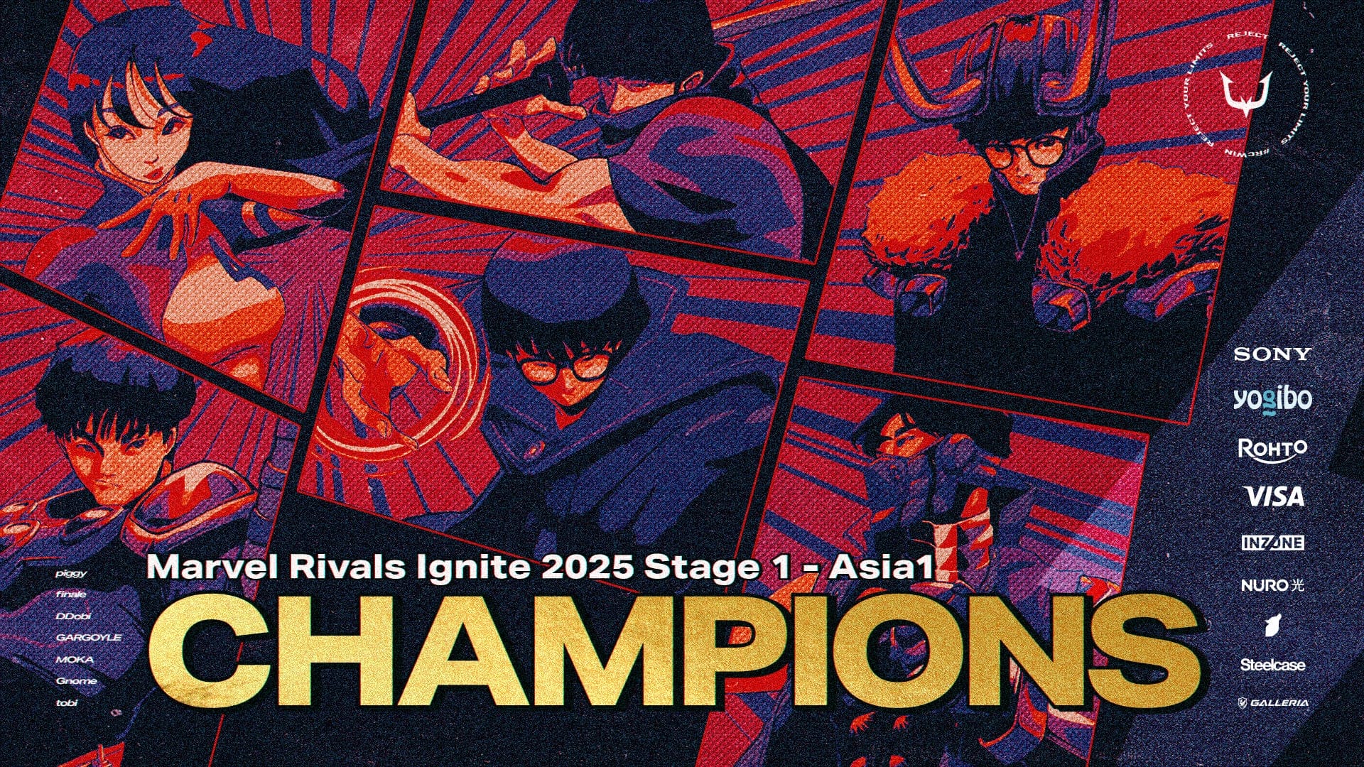 株式会社REJECT(本社:東京都港区、代表取締役:甲山翔也、以下「REJECT」)が運営するプロeスポーツチーム「REJECT」のMarvel Rivals部門が、NetEase主催の国際大会『Marvel Rivals IGNITE 2025 Stage 1 – Asia』において、グループステージおよびプレイオフを通じて全勝優勝を果たし、アジア王者に輝いたことをお知らせいたします。
