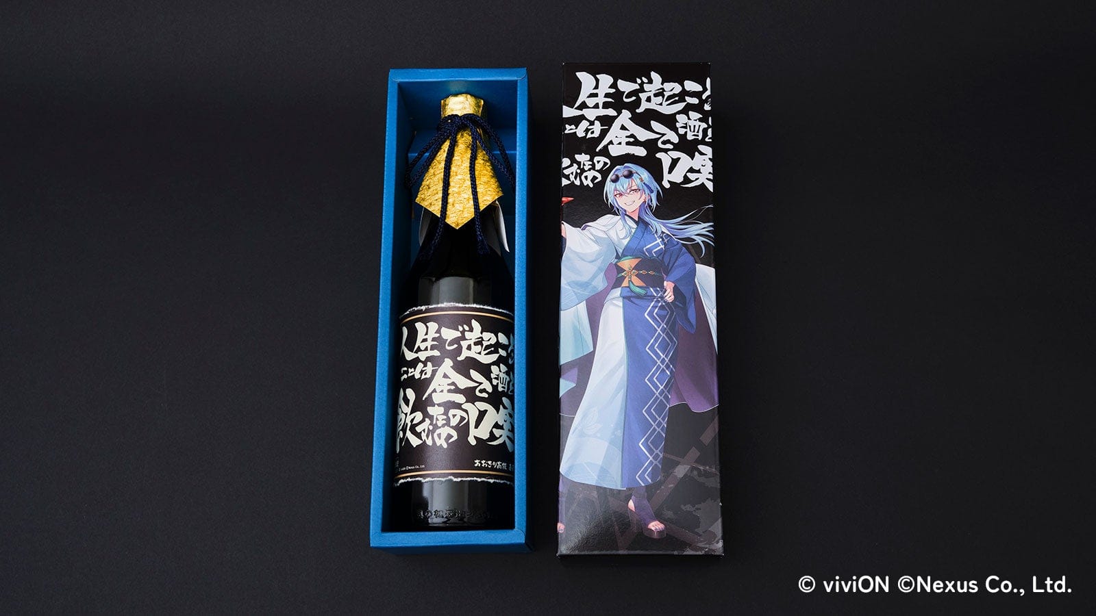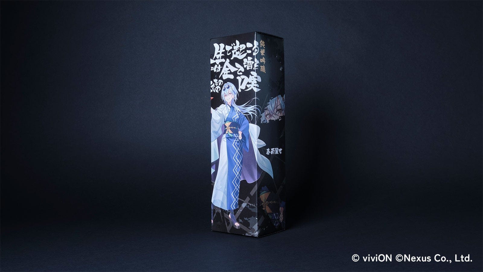 付属する化粧箱は、このコラボ日本酒のために用意したコラボビジュアルをあしらいました。日本酒用のビジュアルということで、普段とは異なり和装の春雨麗女が盃を掲げています。