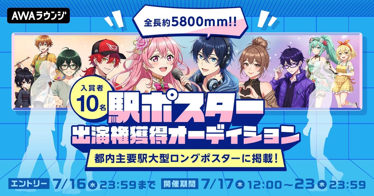 AWA株式会社が運営する音楽ストリーミングサービス「AWA」は、音声ライブ配信者向けの大型オーディションを開催すると発表しました。入賞者10名には、都内主要駅の大型ロングポスター掲載権が与えられるとのことです。