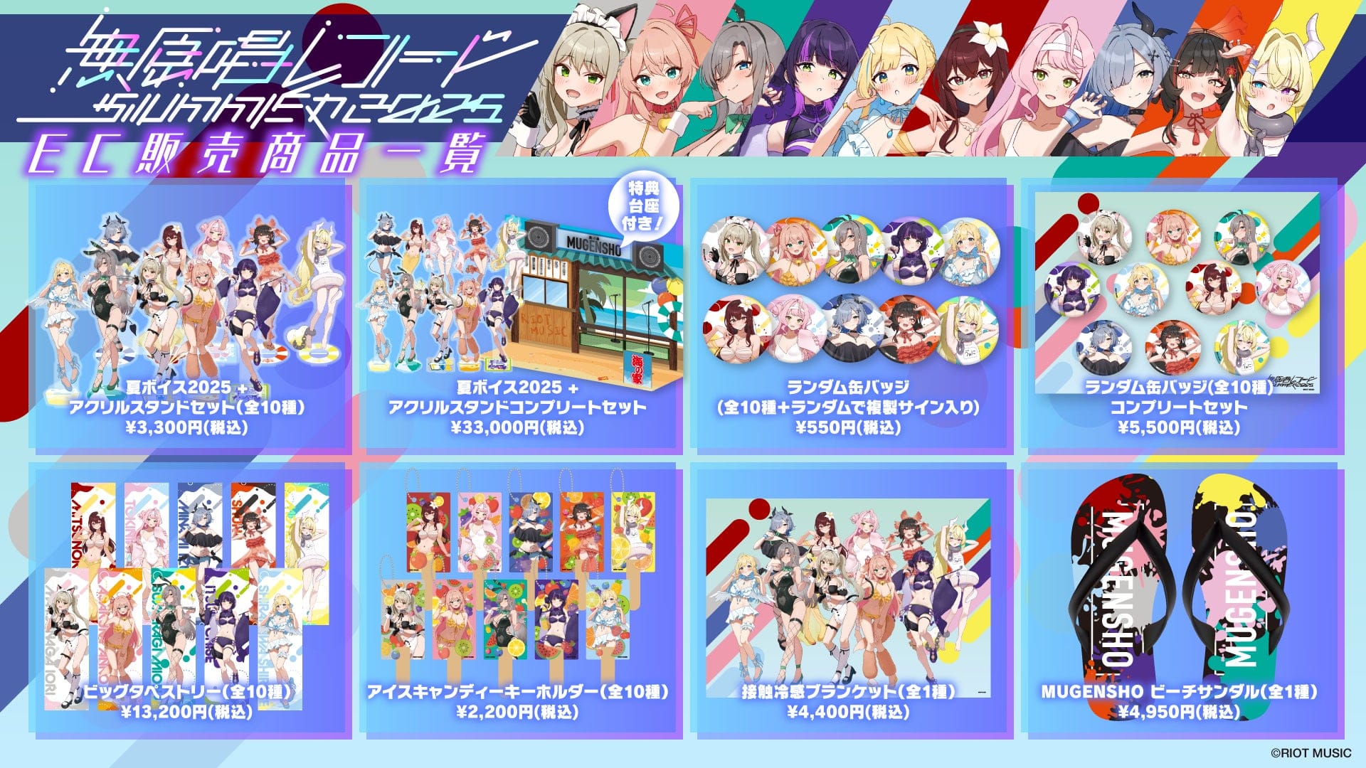 2025年8月15日(金)正午よりRIOT MUSIC OFFICIAL STOREにて、『無原唱レコード SUMMER 2025』のグッズを販売開始いたします。EC限定グッズもご用意しています。この機会にぜひお買い求めください。