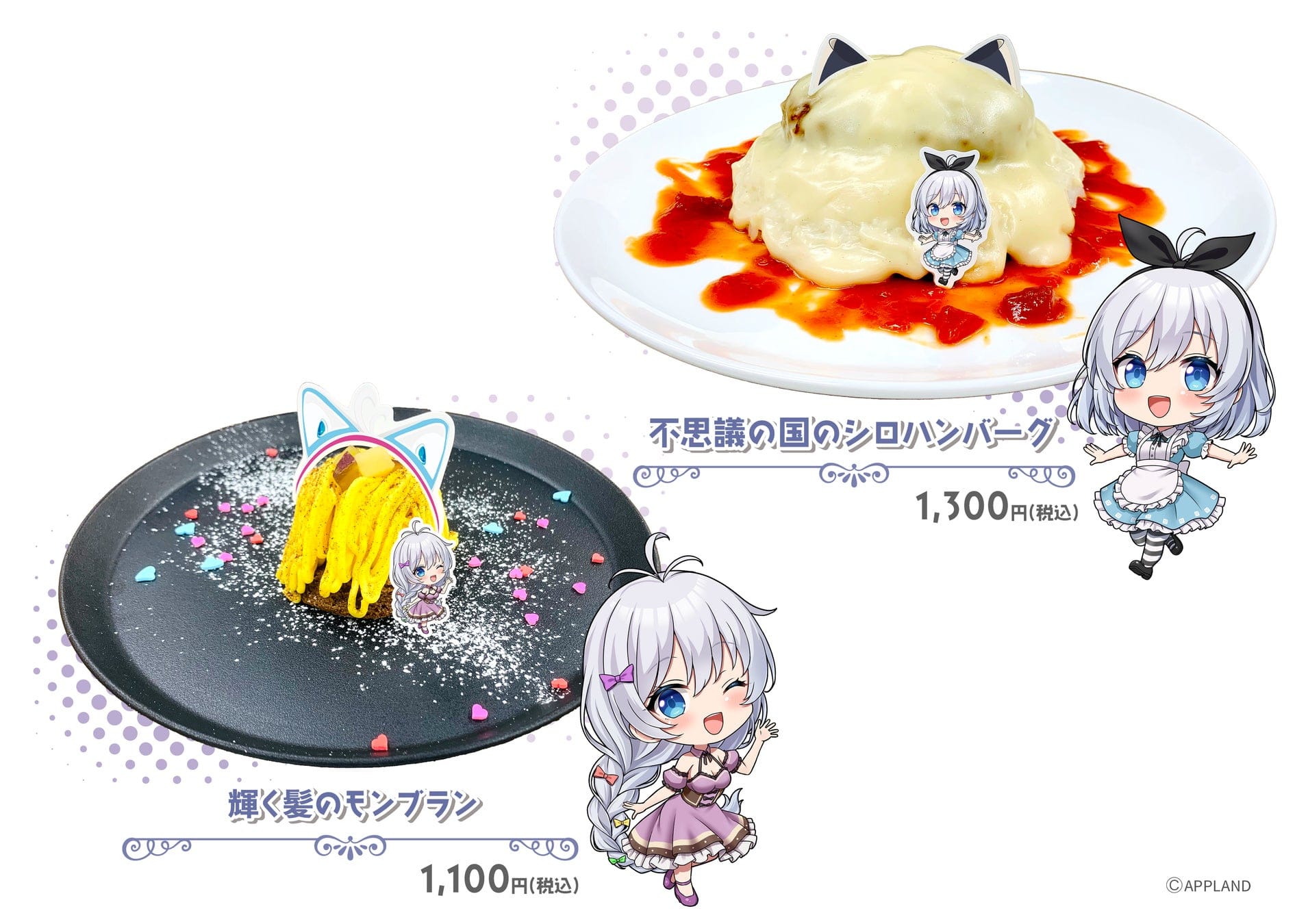 今回のコラボでは、限定メニューや限定グッズに加え、一部店舗ではコラボ仕様の店内装飾もお楽しみいただけます!特に、限定メニューには電脳少女シロが自ら考案したメニューもございますので、ぜひお近くのDiCEまたはAIMへ足を運んでみてください!