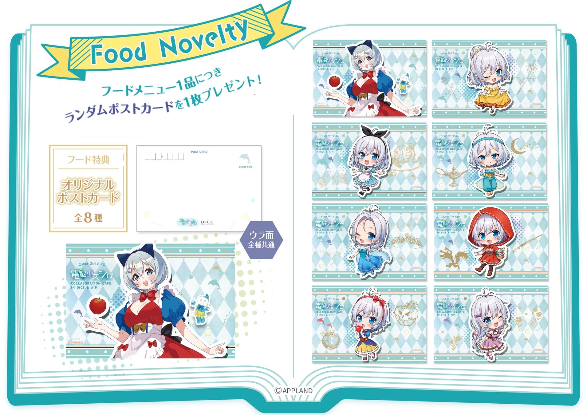 ハッシュタグ「#シロダイス」を付けてコラボフードの写真を投稿すると、抽選で3名様に「ポストカード&コースター全種セット」をプレゼント!
