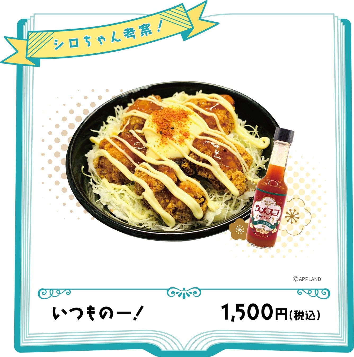 DiCE名物のからあげ丼に、シロちゃんが大好きな「ウメスコ」をトッピング!