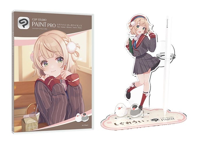 会場ではコラボを記念して、しぐれうい先生のアクリルペンスタンドがセットされた「CLIP STUDIO PAINT PRO 1デバイスプラン12ヶ月版 コラボパッケージ」を販売します。