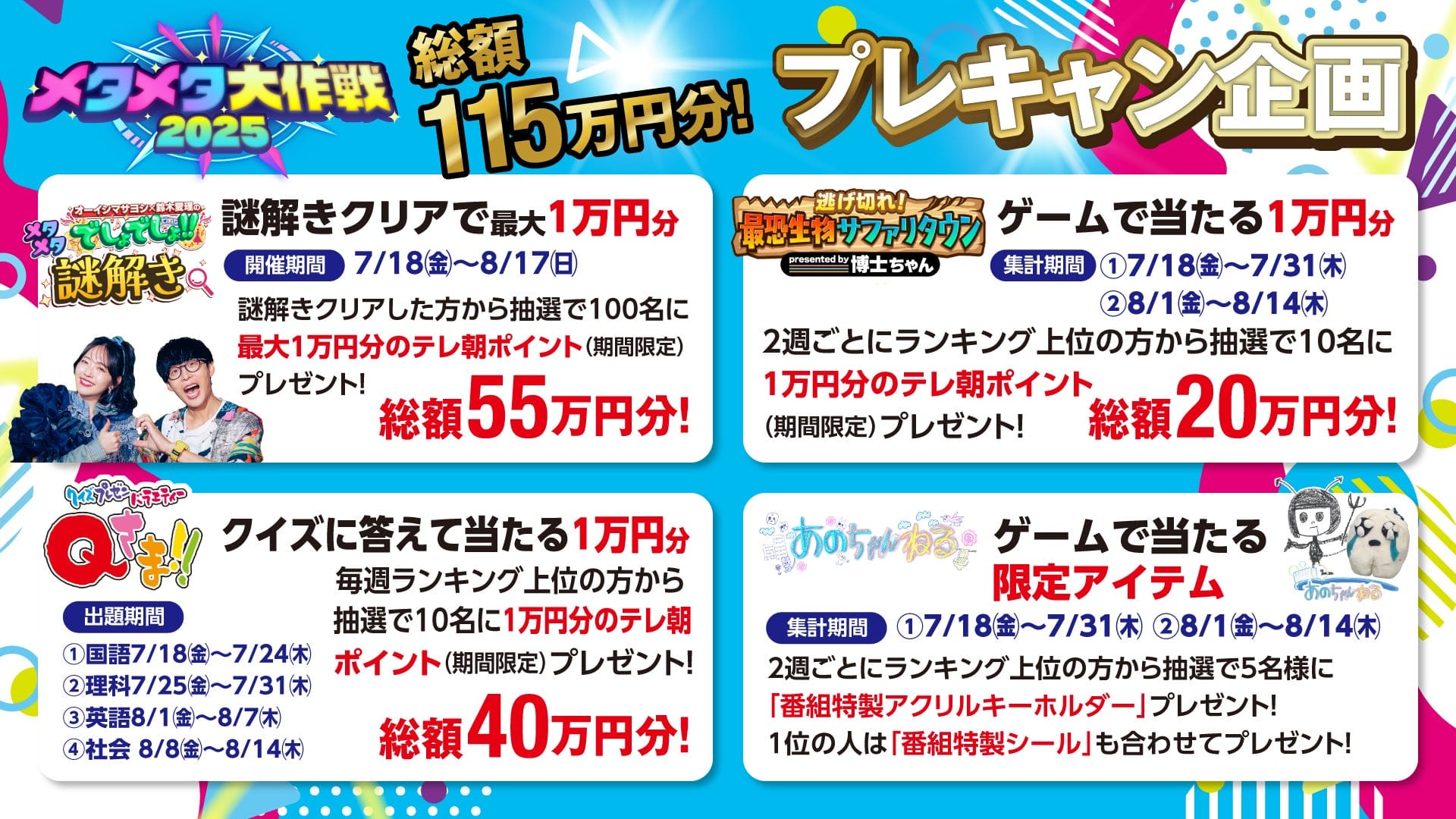 ①「メタメタでしょでしょ!!謎解き」・・謎を全て解き明かし「1万円分のテレ朝ポイント」をゲット!