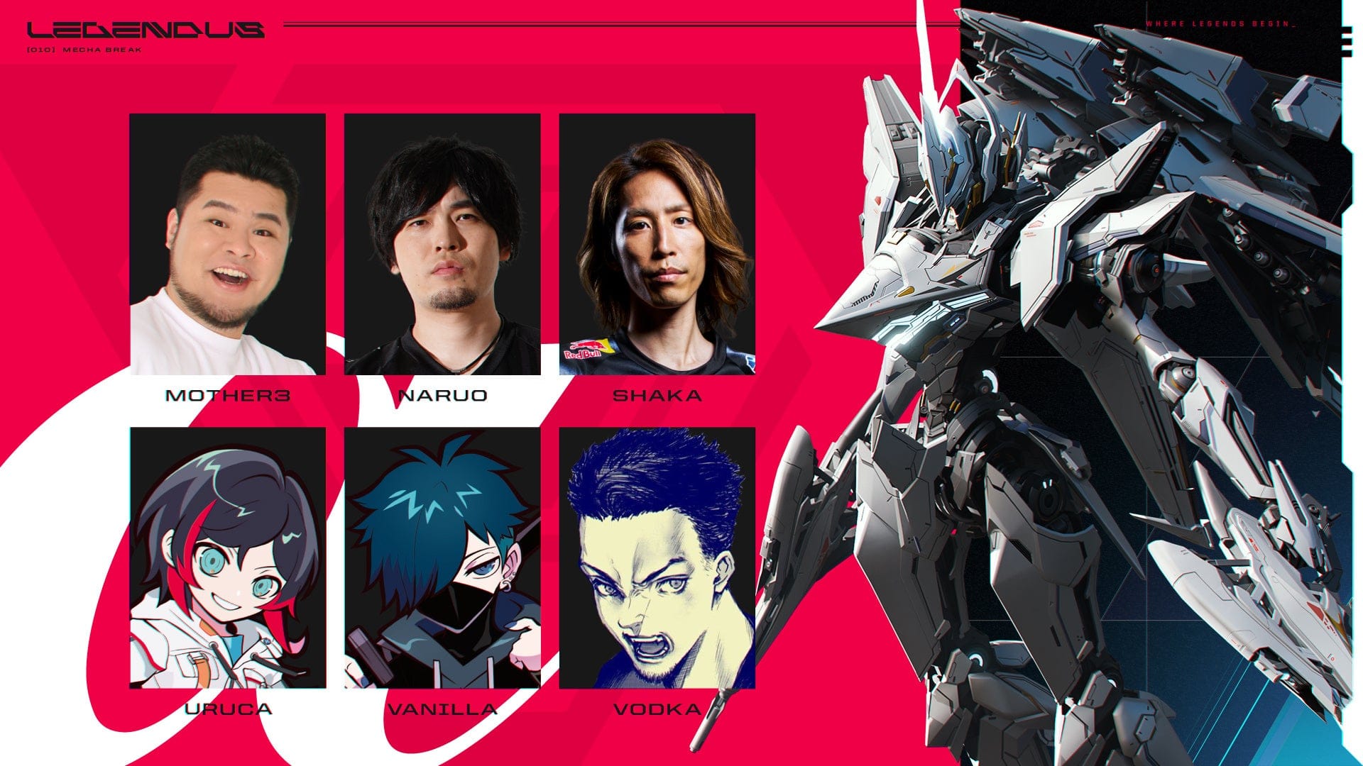 SHAKAは元プロeスポーツ選手で、世界ランキング1位を獲得した実績を持つストリーマー。自身のイベントシリーズ「LEGENDUS」をプロデュースし、ゲーム配信者としての枠を超えた存在だとのこと。『Mecha BREAK』は近未来SFメカをテーマにした多人数対戦ゲームで、多彩なメカや戦術が特徴そうです。