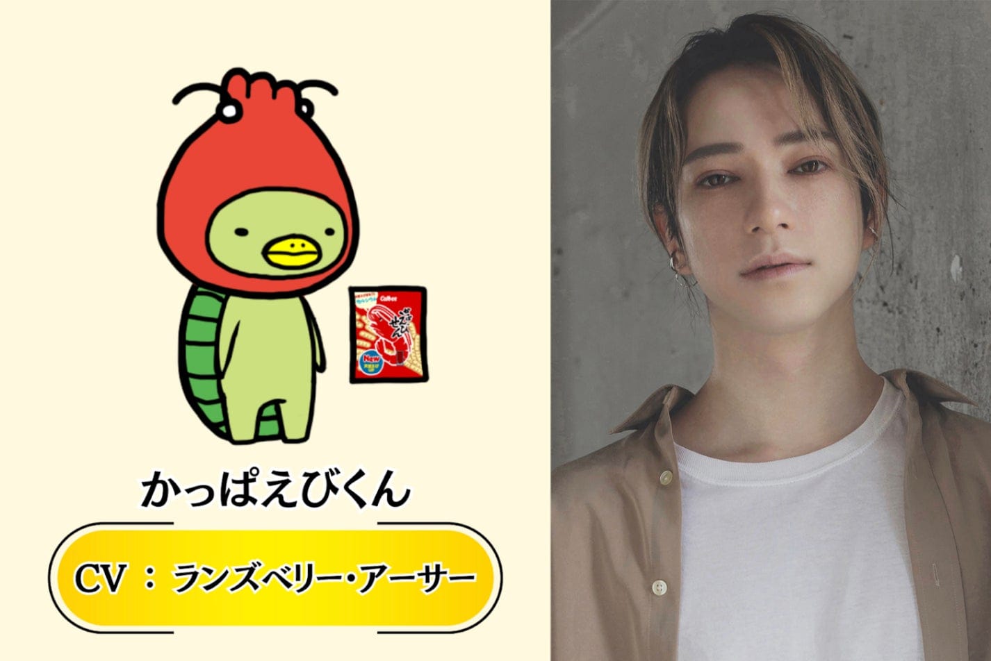 子供の頃からスナック菓子が大好きな自分が、誰もが知ってるお菓子、かっぱえびせんのキャラクターの声を担当させてもらえるなんて本当に嬉しいです。