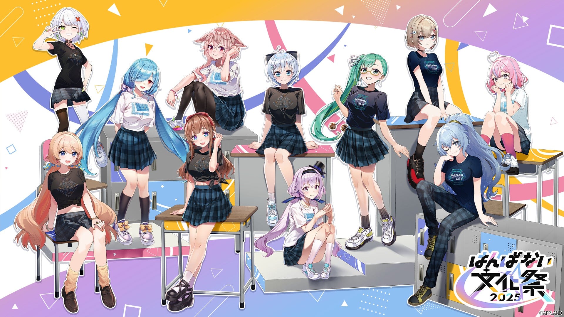 株式会社アップランドが運営するVTuberプロジェクト「.LIVE」「ぶいぱい」合同イベント「はんぱない文化祭2025」が、2025年9月5日から3日間、ところざわサクラタウンで開催されるとのこと。主役のメンバーが文化祭Tシャツ姿で描かれたキービジュアルが公開された。