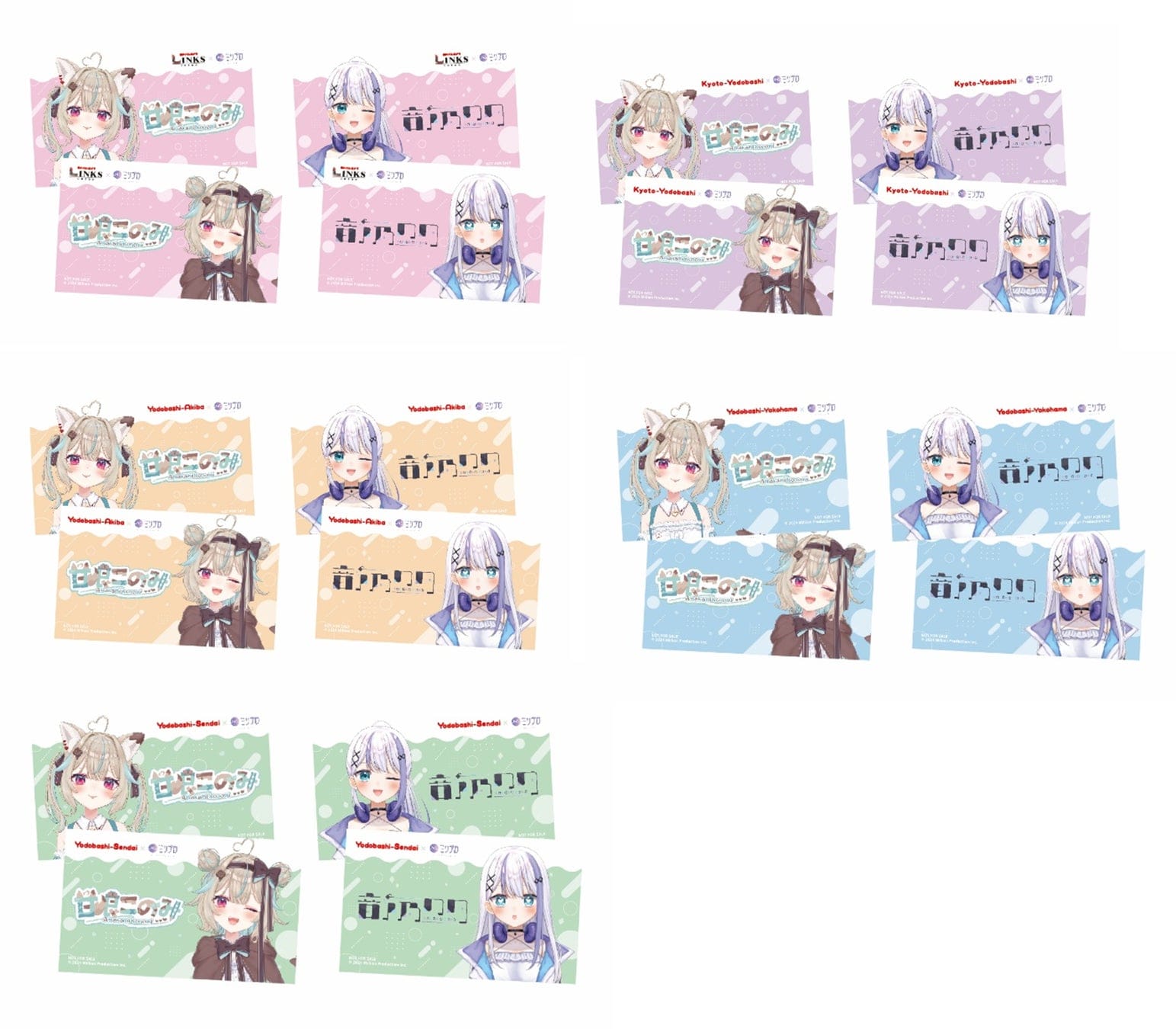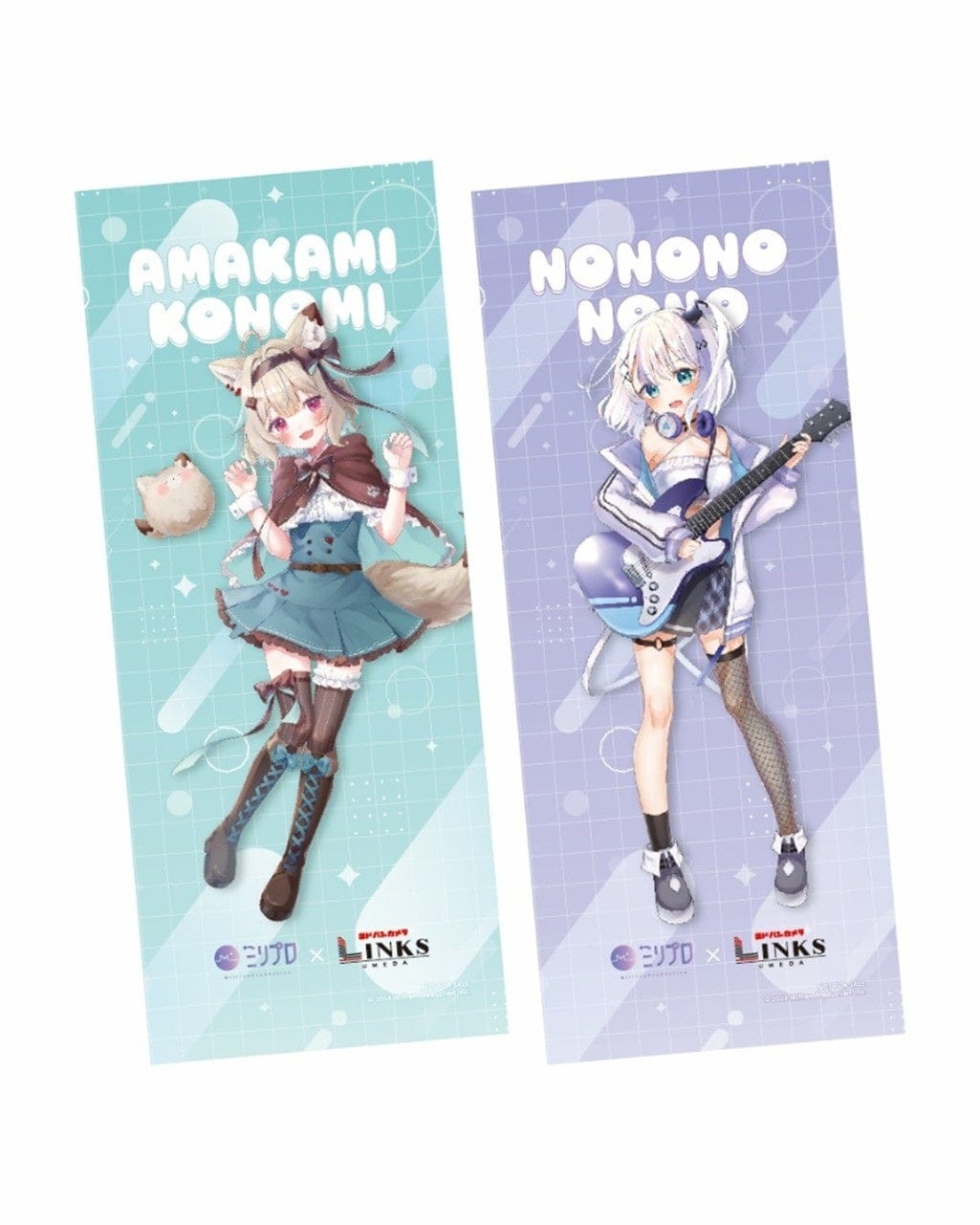 本企画では、対象メニュー注文で限定オリジナルノベルティがもらえるキャンペーンが実施されるとのこと。全国5施設ごとに異なるデザインのステッカーとコースターが用意されており、ドリンクにはコースターも付属する予定です。また、期間中には両VTuberの等身大パネルやコラボポスターが館内に設置されるとのことです。