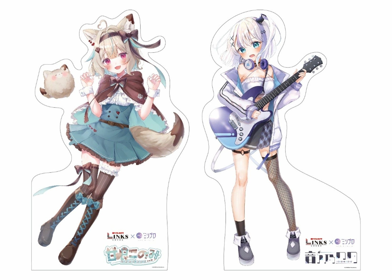 本企画では、対象メニュー注文で限定オリジナルノベルティがもらえるキャンペーンが実施されるとのこと。全国5施設ごとに異なるデザインのステッカーとコースターが用意されており、ドリンクにはコースターも付属する予定です。また、期間中には両VTuberの等身大パネルやコラボポスターが館内に設置されるとのことです。