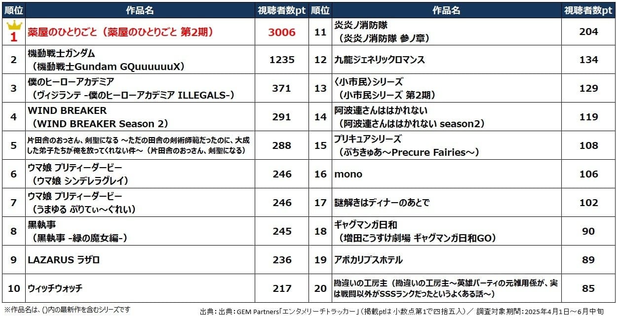 ■2025年 春アニメ 配信コンテンツ視聴者数ランキング