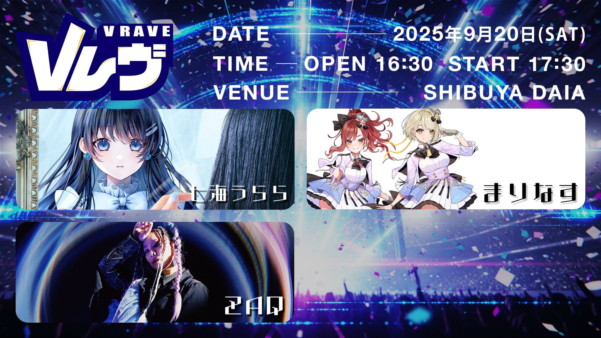 今回のイベント出演者発表第一弾として、七海うらら、まりなす、ZAQが出演決定。
