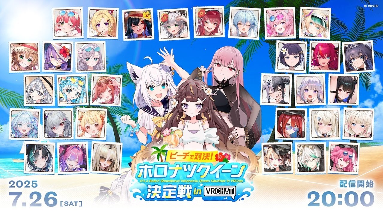 株式会社V(本社:東京都品川区、代表取締役:藤原光汰、以下「V」)は、2025年7月26日(土)に開催されたカバー株式会社が運営する「ホロライブプロダクション」によるイベント「ビーチで対決!ホロナツクイーン決定戦 in VRChat」において、特設ワールドの制作および技術支援を担当しました。