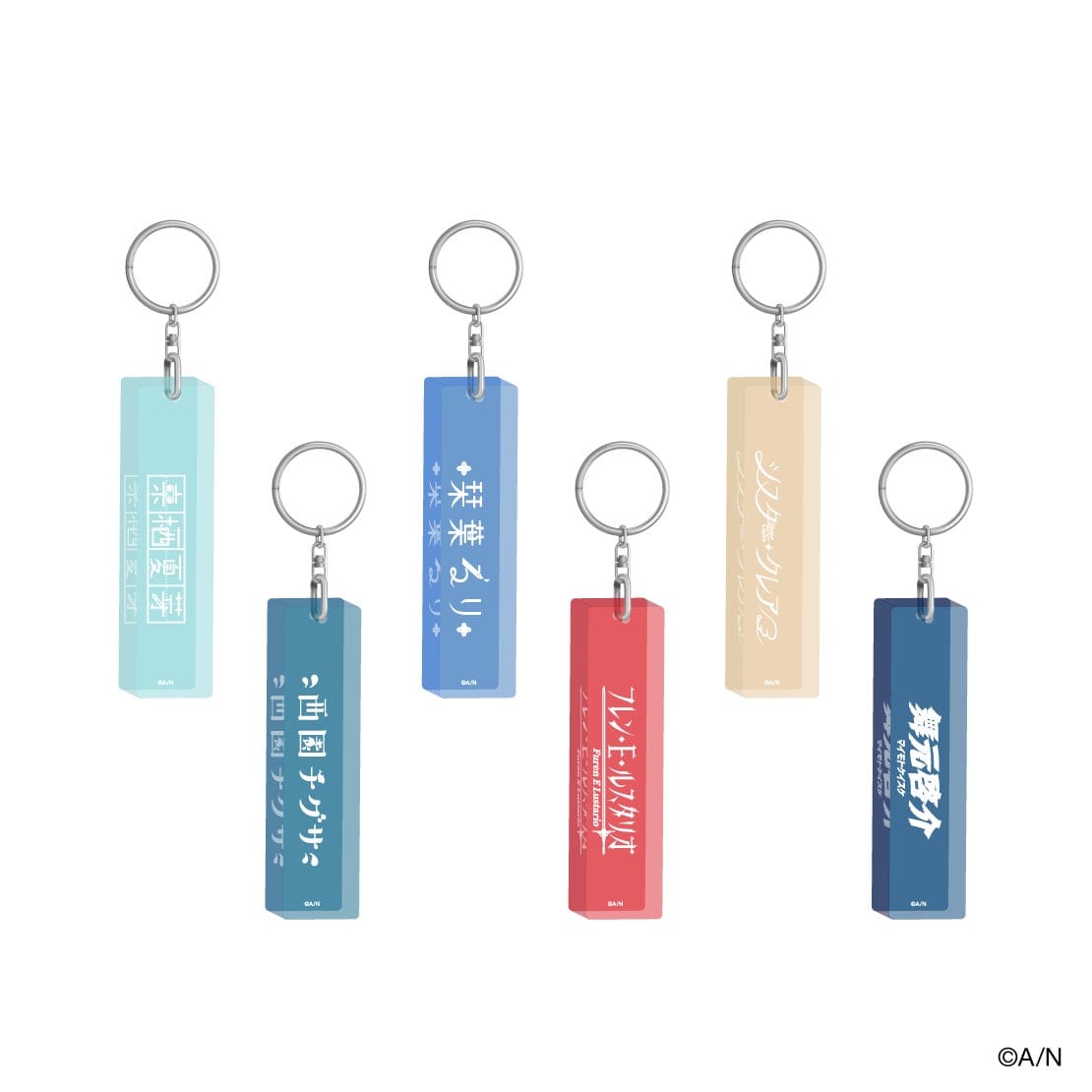 • アクリルスティックキーホルダー:各1,200円(税込)、全6種。アクリル製。