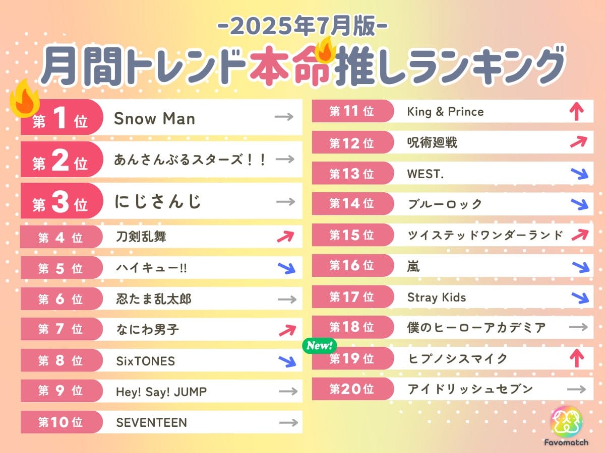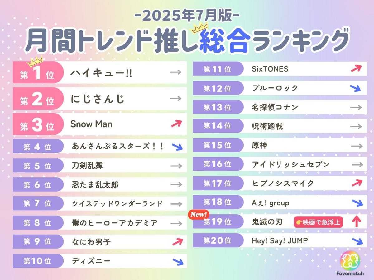 ■【2025 年 7 月版】月間トレンド推しランキング TOP20