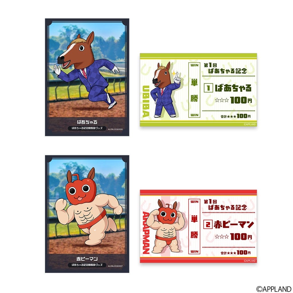 さらに開催を記念して、蹄や馬券など競馬をモチーフとしたばあちゃる・赤ピーマンくんのグッズも販売いたします。この機会をお見逃しなく!