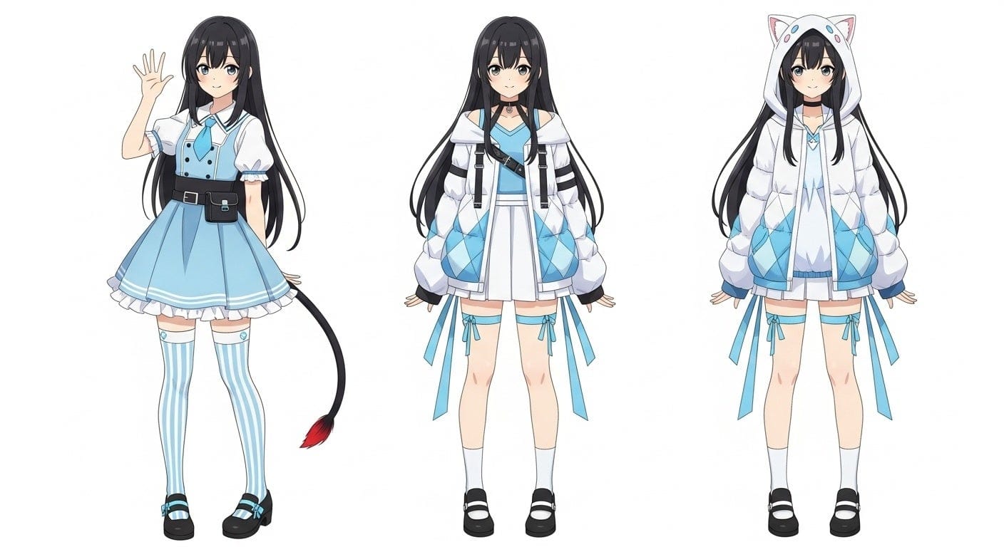 通常衣装のほか、冬用ダウンや猫耳パーカーも