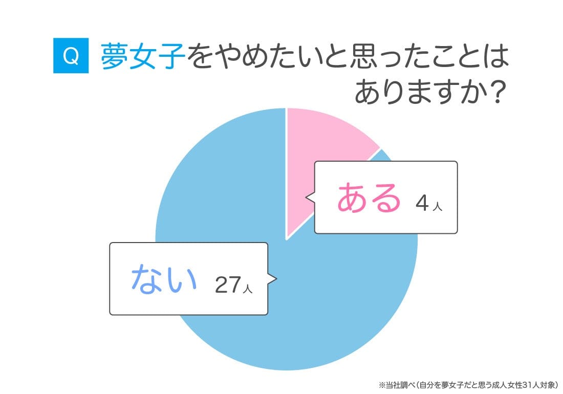 自分を夢女子だと思う成人女性31人に、夢女子をやめたいと思ったことはあるか尋ねたところ、「ある」が約1割でした。