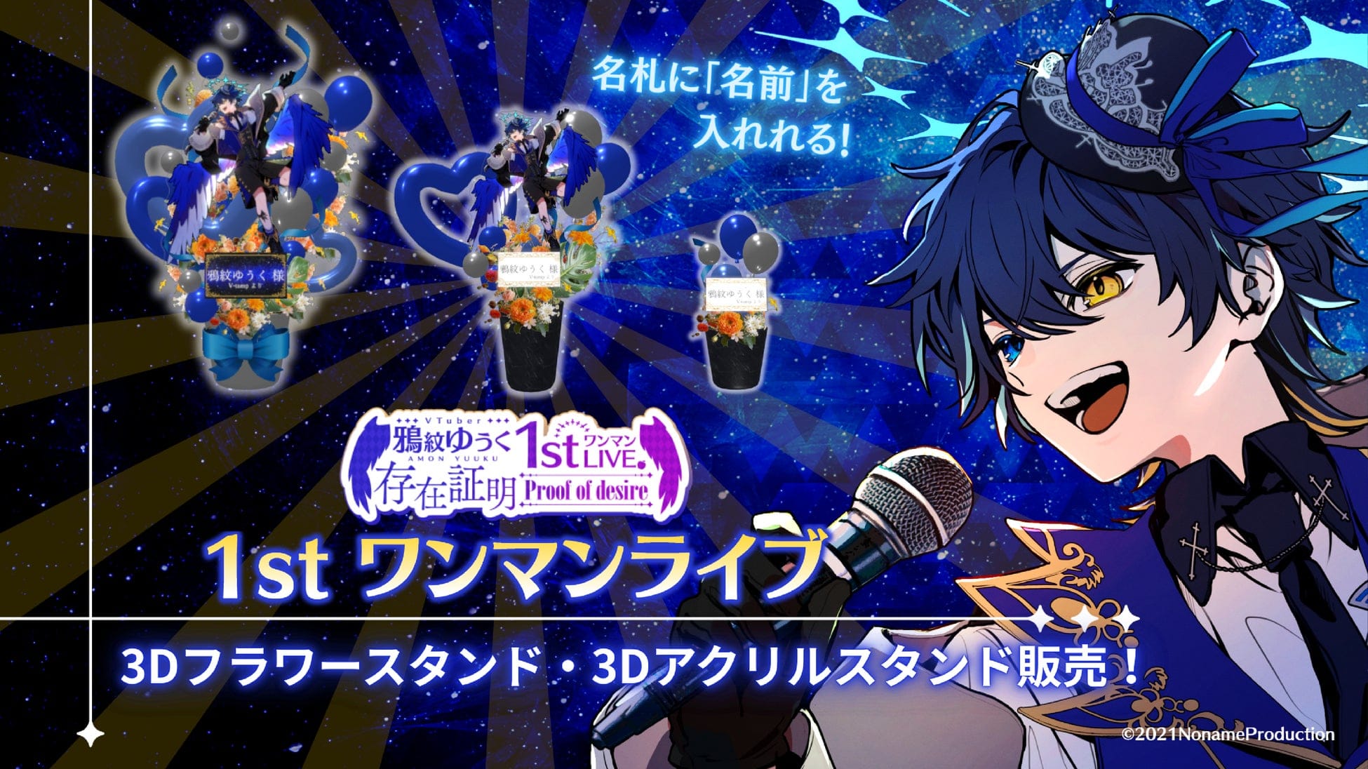 NTTドコモグループ※1の新規事業創出プログラム「docomo STARTUP™」を通じてスピンアウト※2した株式会社CrossVision(以下、クロスビジョン)は、同社のサービスV-tamp(ブイタンプ)において、VTuber事務所「のなめぷろだくしょん」と連携し、所属VTuber「鴉紋ゆうく」1stワンマンLIVE『存在証明 -Proof of desire-』の開催を記念して3Dフラワースタンド・3Dアクリルスタンドの販売を開始したことをお知らせ致します。