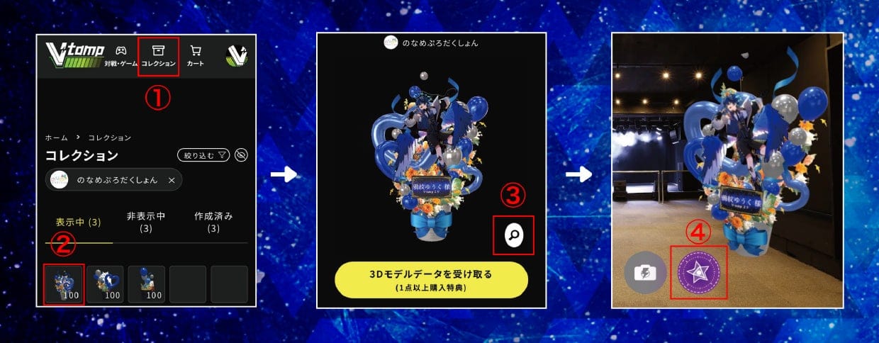 ②3Dフラスタまたはアクスタを購入し、AR機能で撮影
