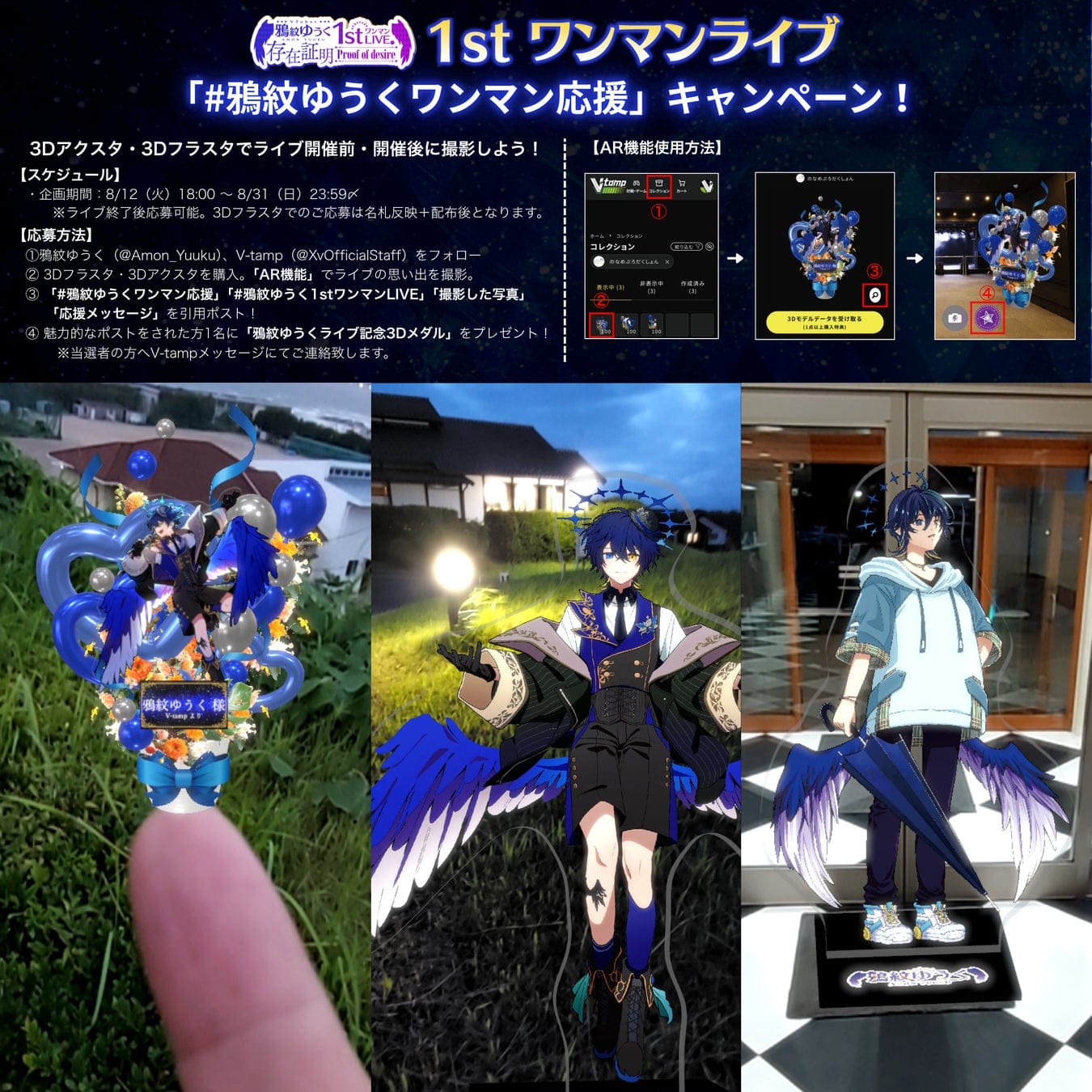 併せてSNSキャンペーン「#鴉紋ゆうくワンマン応援」も開催中(~8/31)。応援メッセージとAR写真を投稿すると、抽選で記念3Dメダルが当たります。応募要領は引用ポスト参照が必要です。