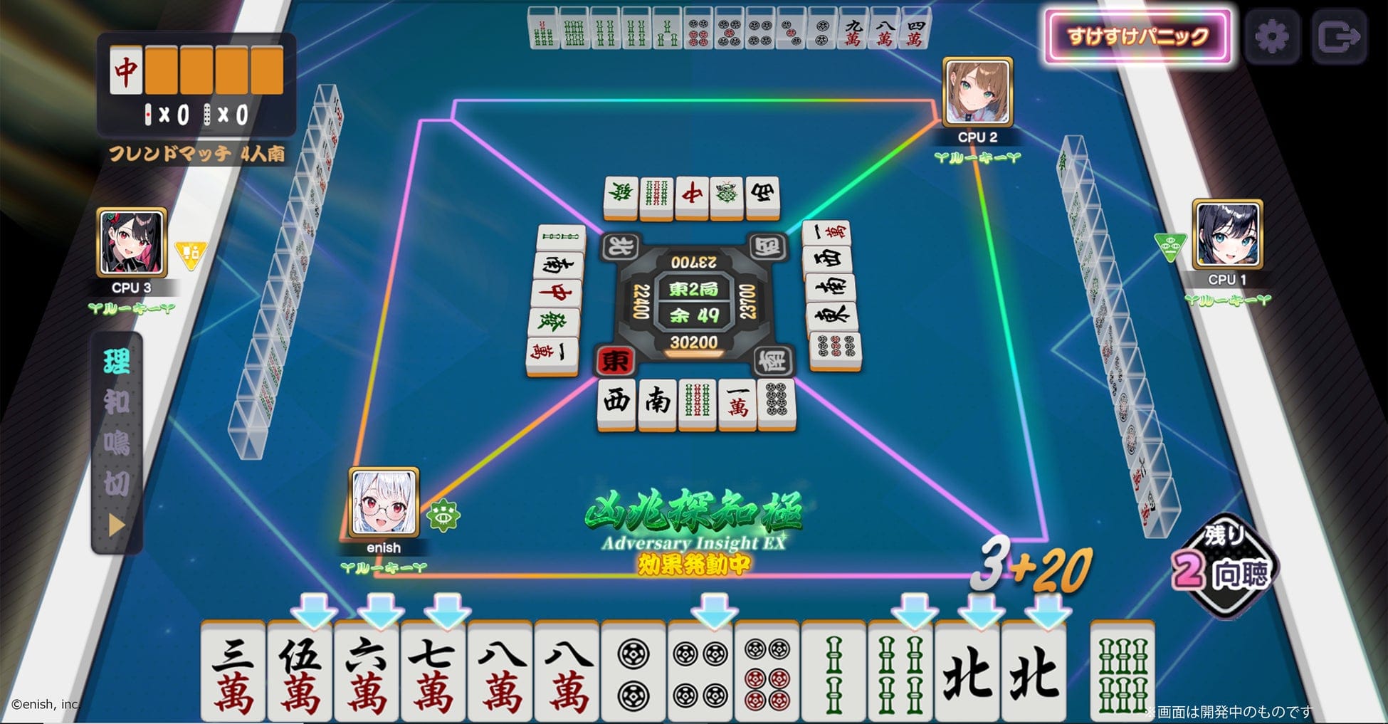 通常の麻雀が楽しめるモードとは別に、異能スキルを駆使した爽快な麻雀バトル、予測不能なハプニングが巻き起こる麻雀対局、そして美少女雀士たちがリアルタイムで一喜一憂する臨場感溢れる実況が流れる、エンタメモードの麻雀が楽しめます。