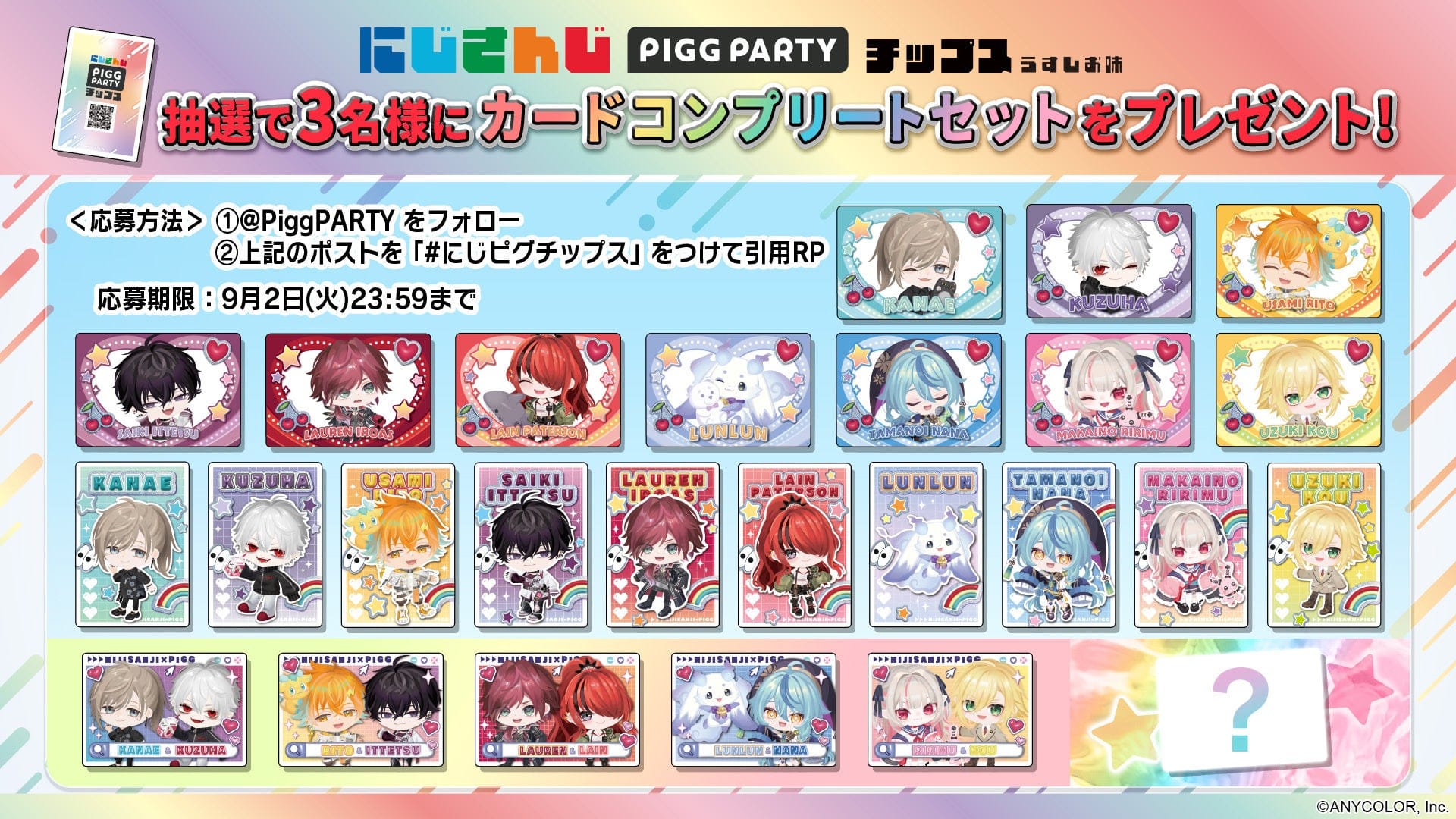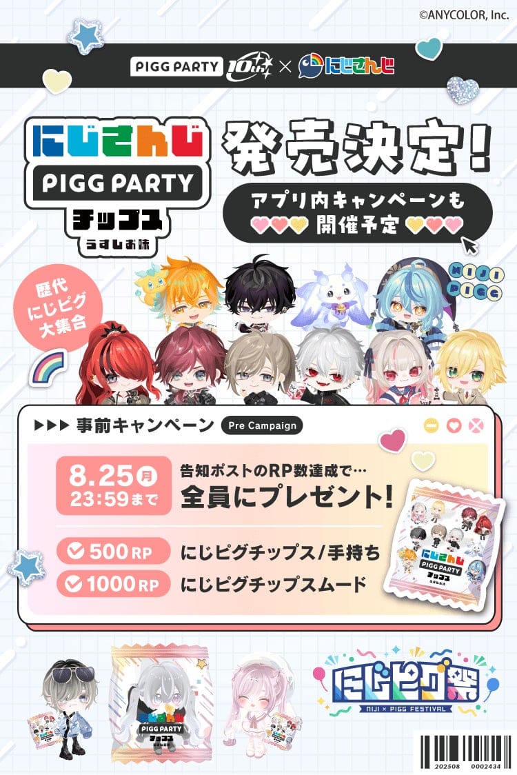 にじさんじPIGG PARTYチップスの発売を記念し、PIGG PARTYアプリ内でも特別キャンペーンを開催いたします。
