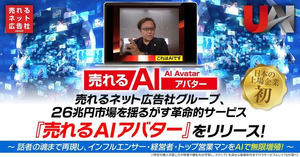 売れるネット広告社グループの連結子会社「売れるAIマーケティング社」は8月20日、実在人物の話し方や特徴をAIで再現する『売れるAIアバター』サービスの提供を開始したと発表した。