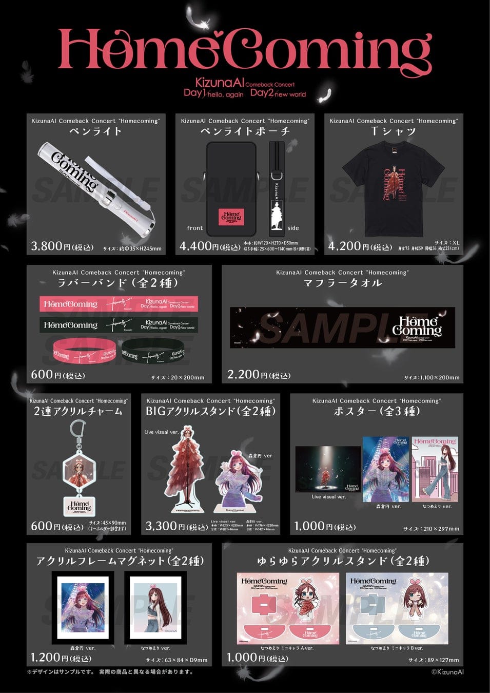 Kizuna AI株式会社(本社:東京都渋谷区、代表取締役:大坂武史)は、9月20日・21日に、Zepp Shinjuku (TOKYO)にて開催されるKizunaAI Comeback Concert ”Homecoming”の公式グッズラインナップを発表いたします。