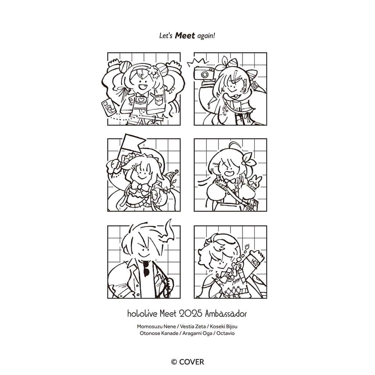 2022年に始動した『hololive Meet』プロジェクトは、「ホロライブプロダクション」傘下の「ホロライブ」、「ホロライブインドネシア」、「ホロライブEnglish」、「hololive DEV_IS」所属の「ReGLOSS(リグロス)」、「ホロスターズ」、「ホロスターズEnglish」による、海外コンベンションへのブース出展や、海外イベントへのゲスト出演などの活動をするグローバルイベント企画です。TOMは、本プロジェクトの2025年度オフィシャルパートナーとして、『hololive Meet』プロジェクトのアンバサダーである、桃鈴ねね(ホロライブ)、ベスティア・ゼータ(ホロライブインドネシア)、古石ビジュー(ホロライブEnglish)、音乃瀬奏(hololive DEV_IS) 、荒咬オウガ(ホロスターズ)、オクタビオ(ホロスターズEnglish)等のオリジナルグッズを、企画・販売いたします。