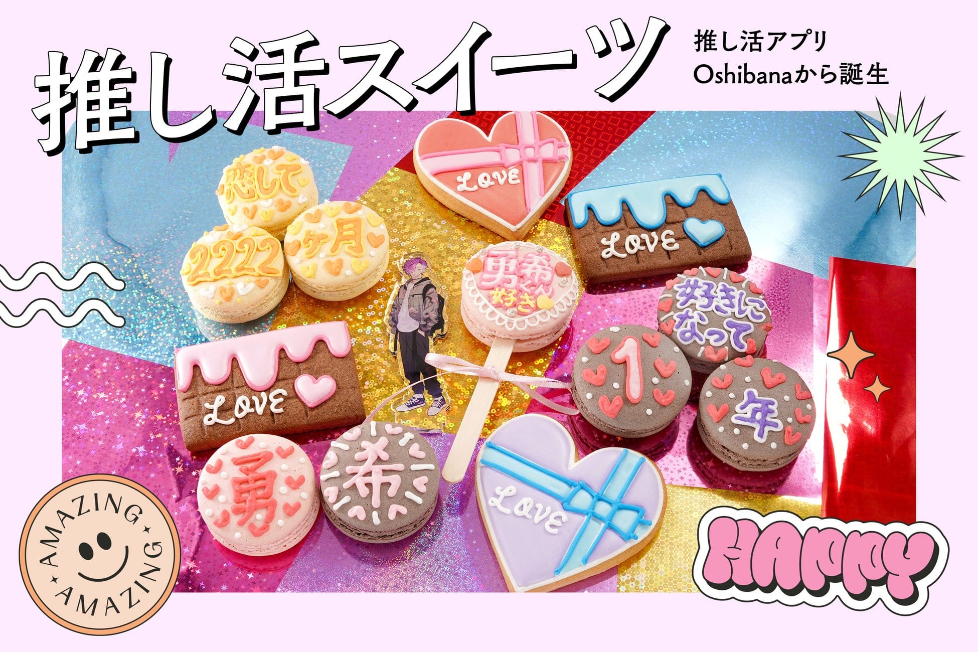 推し活アプリOshibanaでは、「推しマカロン」や「お祝い用クッキー」といった、推しの記念日をお祝いするための特別なスイーツを現在販売中です。