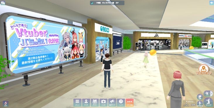 スマートフォンやパソコン、タブレットなどからアプリ無しでもログインし、アバターを操作することで、オンラインショッピングやライブイベントなどが楽しめるメタバースの商業施設です。キャラクターショップが集積された1号館、神保町の古書店、神田カレーグランプリ受賞店、秋葉原のメイドカフェ、お茶の水楽器店などが集積された2号館、47都道府県のご当地VTuberが方言で応援大使を務めるお店が集積された3号館、ゲームショップが集積された4号館、デザイナー、アーティストなどのクリエイターのお店が集積された5号館、小学生にも楽しんでもらえる6号館等、現在250店舗以上のお店や、写真展会場、イベント会場、現在900名以上が参加し、1分ごとにVTuberが紹介されるVtuber時計などが展開されています。
