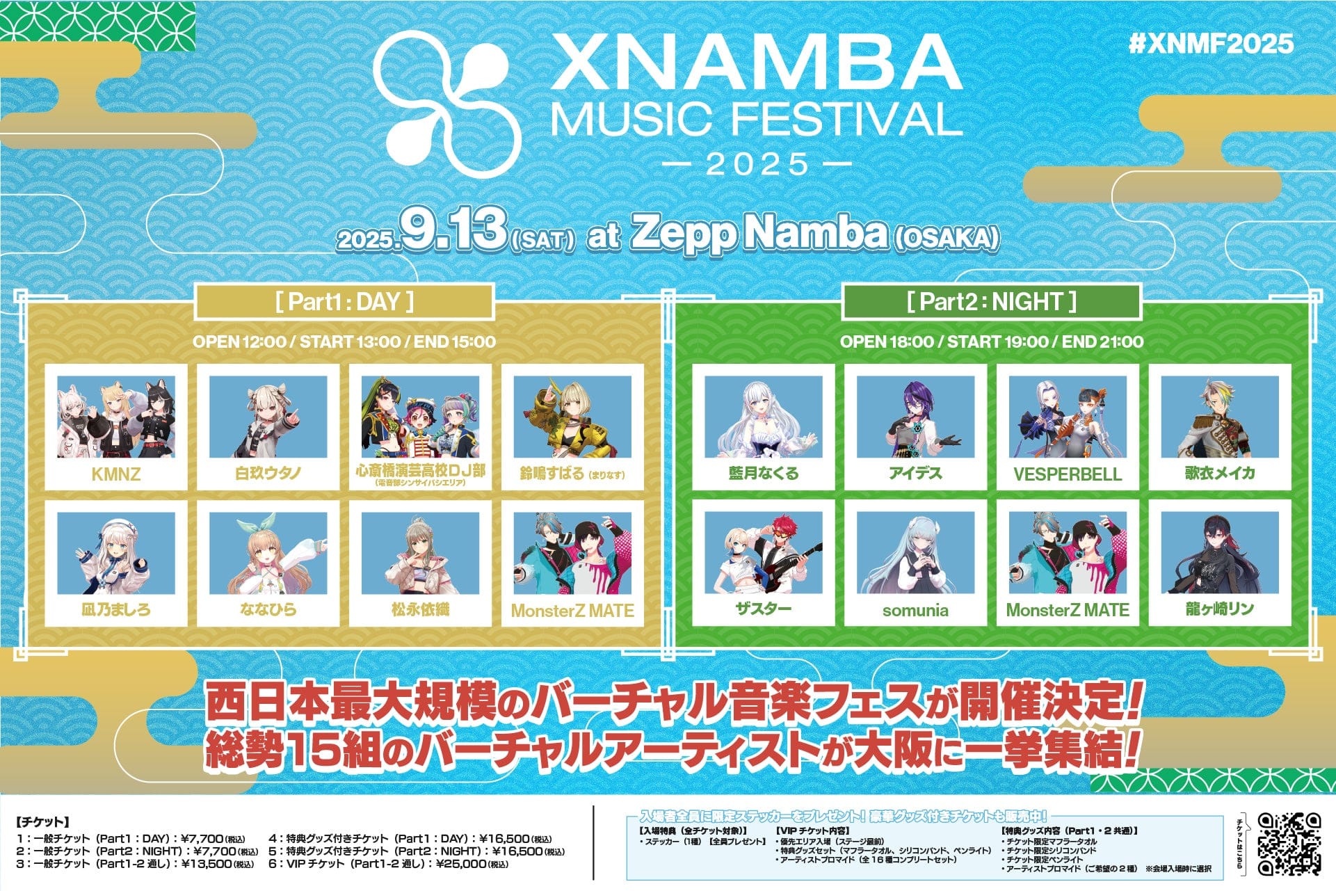 株式会社Meta Osaka(大阪市)は2025年9月13日、大阪・Zepp Nambaにてバーチャルアーティスト15組が出演する「XNAMBA MUSIC FESTIVAL-2025-」を開催すると発表した。YouTube総登録者280万人超の人気VTuber陣が集結し、2500人規模の会場で昼夜2公演実施される。西日本最大級のバーチャル音楽フェスティバルとなる。