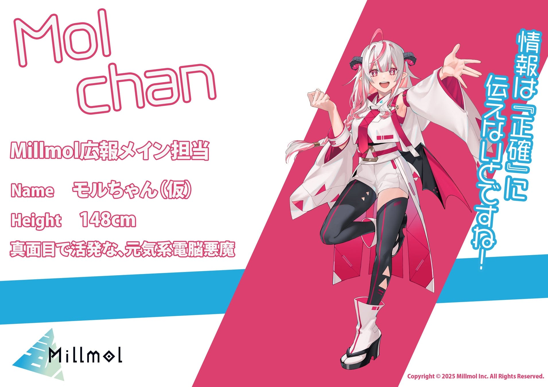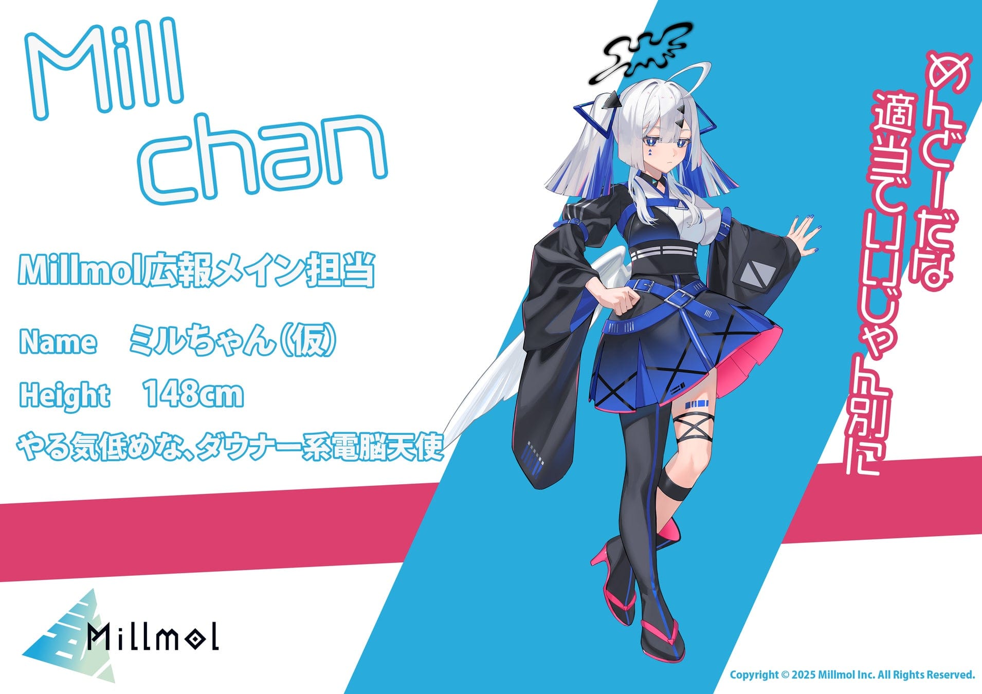 「クールなミルちゃん、元気なモルちゃん、二人がこれからどんな活躍をしていくのか、 楽しみにしながらデザインをさせていただきました! かわいさ、かっこよさを詰め込んだ二人と、Millmol様の応援をどうぞよろしくお願いします!」